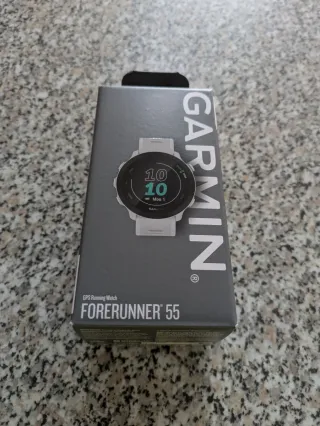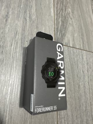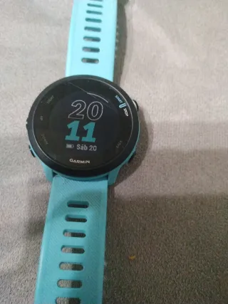 Reloj GPS Garmin Forerunner 55 en color azul. - Diseño ligero y cómodo. - Correa de silicona. -La pantalla tiene un arañazo.