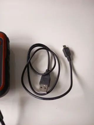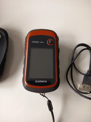 Dispositivo GPS Garmin eTrex 20 en color naranja y negro. - Pantalla a color. - Resistente al agua y al polvo. - Incluye cable USB. - Tarjeta de memoria de 32 GB - Funda protectora - Manual de instrucciones