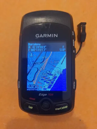 Dispositivo GPS Garmin Edge 705 para ciclismo. Usado. Tiene alguna pequeña marca de uso. - Pantalla a color. - 2 cargadores - 1 adaptador para tomas Inglesas - Manuales y CD originales - Soporte para manilhar, adaptado