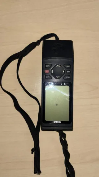 Dispositivo GPS Garmin modelo 38. En un estado aceptable fue comprado en un mercado la persona que me lo vendió me dijo que lo había pegado los laterales con pega fuerte pero se muestra que se a despegado un poco por eso el precio no sé cuánto llegue a costar esto aún así funciona