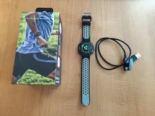 Se vende reloj deportivo Garmin Forerunner 45 en color negro. Está en perfecto estado y sirve para running, correr en cinta, bici, bici estática, caminar y se pueden añadir, manualmente, otros deportes. Además, dispone de GPS integrado, se conecta via Bluetooth con el móvil y aporta datos de sueño, descanso, etc. Cuenta con cargador incorporado, batería en perfecto estado y pantalla a color. Se vende con caja original y papeles.