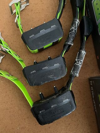 Se venden tres collares GPS Garmin TT 15. En muy buen estado y funcionand perfectamente. Solo tienen 2 temporadas. Tengo factura para enseñar. - 250€ cada uno. - PRECIO NO NEGOCIABLE - Color: Negro y verde neón. - Correa ajustable. - Hebilla metálica.