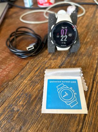Reloj deportivo Garmin Forerunner 45 en color blanco. Protector de pantalla extra + cable - Pantalla a color. - GPS integrado. - Monitor de frecuencia cardíaca. - Seguimiento de actividad física.