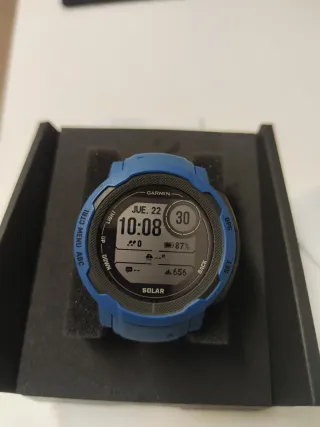 Reloj inteligente Garmin Instinct 2 Solar en color azul. Diseñado para ser resistente y duradero. - Pantalla con tecnología Solar para carga adicional. - GPS integrado para seguimiento de actividades. - Diseño robusto y deportivo. -Buen lector de pulso. -Control de salud diario y seguimiento de sueño. -NFC para pagos con el reloj. -Reloj muy personalizable con muchas watchface descargables de Garmin Connet. -Permite descargarse apps de Garmin Connet. -Se le pueden meter tracks para seguimiento de rutas. Es un regalo que no uso y me da pena tenerlo parado.