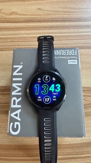 Reloj inteligente Garmin Forerunner 165 en color negro y gris. Diseñado para corredores y deportistas. Totalmente nuevo sin abrir, precintado. Garantía de 1 año proporcionada por la marca. - Pantalla AMOLED. - GPS integrado. - Funciones de smartwatch.
