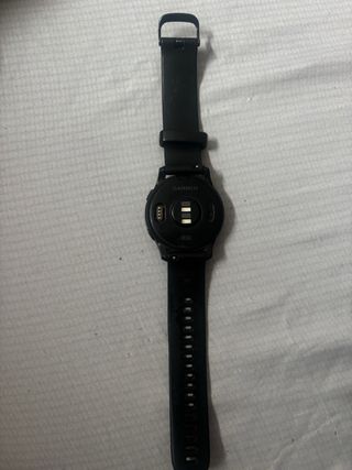 Garmin Vivoactive 3 Music en buen estado y funcionando perfectamente. Lo cambio por actualizarme a un nuevo modelo. - Permite conectar auriculares Bluetooth y escuchar música directamente desde el reloj, usando Spotify Premium. - Medición de frecuencia cardíaca en la muñeca. - Resistencia al agua (5 ATM). - Batería de hasta 7 días en modo reloj. - Se entrega con caja y cable de carga original. * Tiene un rasguño en la parte superior de la pantalla como se ve en las fotos y en la correa una pequeña fisura (se puede reemplazar por una nueva). Nada que altere su funcionamiento. Entrega en mano o envío.