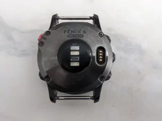 Reloj deportivo Garmin Fenix 6 Pro Solar en color gris y negro. - Ligeras marcas en bisel por el uso. - No funciona la conectividad bluetooth, pero todo lo demás perfectamente (actividades, gps, batería, almacenamiento usb, garmin express...) Incluye cable y caja originales, y una correa.