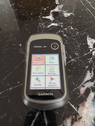 Dispositivo GPS Garmin eTrex 30. -En funcionamiento al 100% - Pantalla a color. - Incluye manuales, cable, caja original. -Incluye tarjeta con cartografía, listo para utilizar. -Nota: Protección de uno de los botones desgastado que no afecta al funcionamiento,””se ve en una de las fotos”. -Se vende por cambio a Garming edge 540.