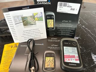GPS Garmin Etrex 30x en impecable estado, como nuevo. Incluye manuales y accesorios. - GPS Garmin Etrex 30x - Manuales de usuario y de inicio rápido - Tarjeta de memoria Kingston Micro SD con adaptador - Cable USB - Dos soportes - Funda de transporte Garmin