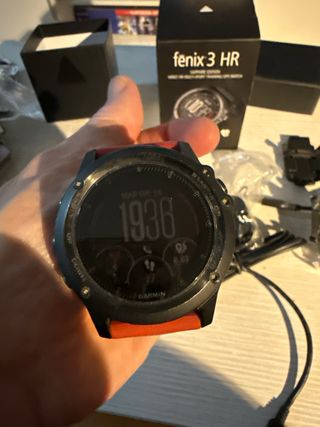 Reloj GPS multideporte Garmin Fenix 3 HR Sapphire Edition. Reloj Garmin con sensor intergrado en el reloj sin necesidad de banda, edición con cristal de zafiro prácticamente irrompible, ha sido usado muy ocasionalmente, nunca a diario, por lo que esta en excelentes condiciones. la batería evidentemente no esta nueva pero en muy buen estado y sigue durando hasta varios días dependiendo del uso. Se incluye accesorios y embalaje original No negociable. +info en Google Abstenerse preguntones y regateos. no tiento tiempo.