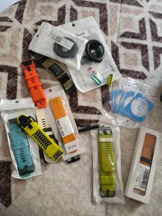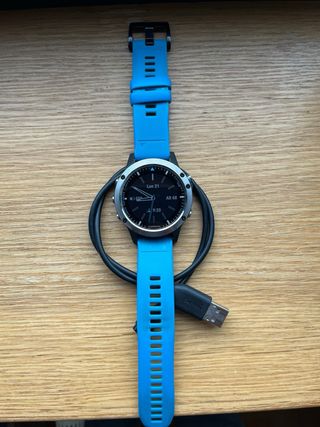 Reloj con su caja original, comprado junio 2021. Perfecto estado, ninguna marca ni rayazo. Entrego dos correas azules (una nueva) y otra negra nueva. Entrego con protector de cristal templado nuevo. garmin fenix quatix epix 3 4 5 6 7 8 9 6s 7s solar 255 265 945 955 965 suunto polar race coros pace