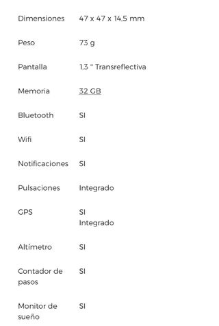 El precio mostrado es el de venta en nuestra tienda. El precio de este producto en nuestra página web puede ser diferente. Este artículo está disponible en nuestra tienda de Zaragoza. garmin fenix 7s CC052_E692764_0 es un objeto que se ofrece en estado muy bueno. Todos nuestros productos cuentan con garantía de 3 años y un plazo de devolución de 14 días. Medicion saturacion oxigeno: No | Marca: Garmin | Modelo: Fenix 7s | Bluetooth: Si | Gps: Si | Wifi: No | Altavoces: Si | Cargador: Si | Sistema operativo: Android | Caja original: No | Informacion adicional: Revisar el estado de uso en las imágenes. | Compatibilidad: Androi