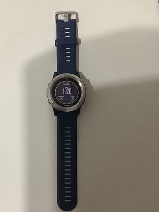 Reloj deportivo Garmin Fenix 3 con correa azul y bisel plateado. - Incluye cargador y soporte. - Correa de silicona. - Bisel de acero inoxidable. Esta en perfecto estado. Tiene altimetro barómetrico y puede cargarsele tracks.