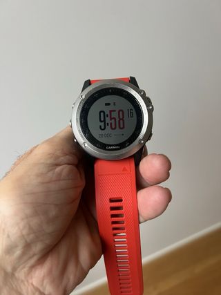 Reloj deportivo Garmin Fenix 3 en color gris. - Pantalla circular. - Correa de silicona. - Bisel metálico. Se incluye la correa negra original y otras 3 de varios colores, además de algunas gomas de repuesto que se suelen desgastar con el uso. Tiene sus años pero funciona perfectamente, running, natación, ciclismo, triatlon, una pasada de reloj sin florituras para que aguante la batería una barbaridad
