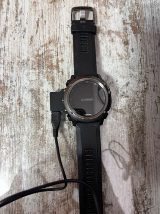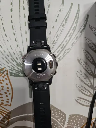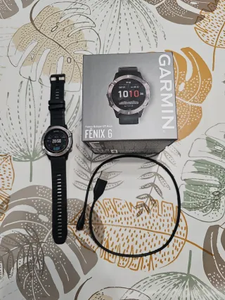 Reloj deportivo Garmin Fenix 6 en color negro. - Diseño elegante y funcional. - Correa de silicona. - Cable de carga. -3 protectores de pantalla. -1 protector de marco. Lo vendo porque me han regalado el fenix 7