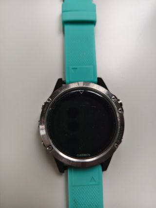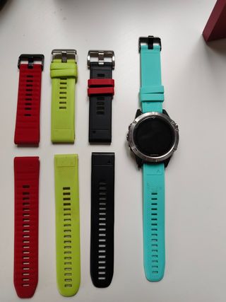 Vendo mi Garmin Fenix 5. Está en perfecto estado. Se incluye el reloj y 3 correas adicionales de diferentes colores (rojo, verde lima, negro y dos turquesa). Las correas son de silicona y parecen estar en muy buen estado. ¡Perfecto para cualquier deportista!