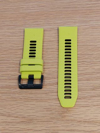 Reloj deportivo Garmin Fenix 5 con correa intercambiable. - Color de la caja: Negro. - Color de la correa: Verde lima. - Incluye cable de carga USB.