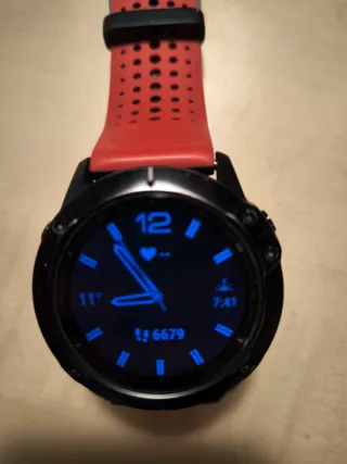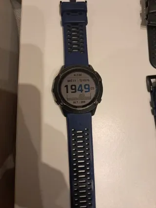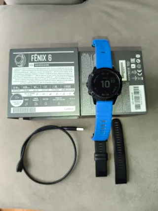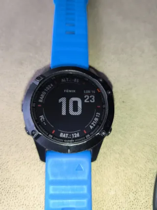 Reloj deportivo Garmin Fenix 6X con correa azul y bisel negro. Reloj muy cuidado,sin golpes. Cristal intacto,siempre con protector. - Correa de silicona. - Bisel de color negro.
