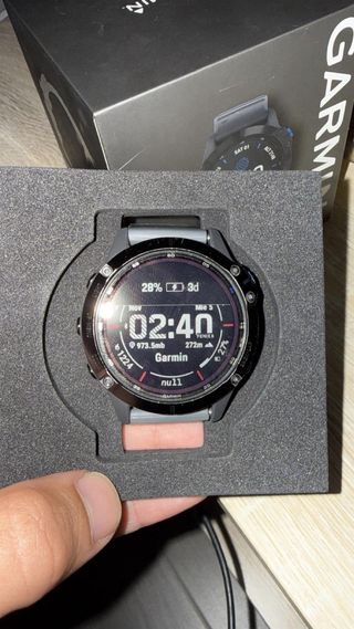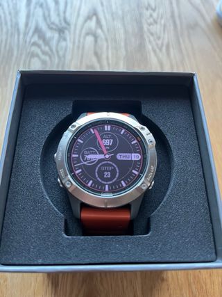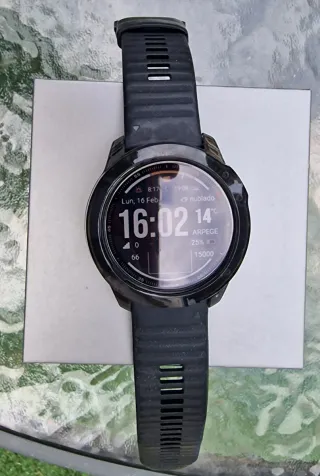 Comprado en tienda oficial el 01/02/2023 (con factura). Reloj multideporte de gama alta con carga solar, mapas, música y métricas avanzadas. Incluye pack completo: caja original, cable original Garmin, correa original, correa adicional de nylon, adaptadores USB-C acodados y herramientas. Pantalla en muy buen estado, bisel con leves marcas normales de uso. Sensores perfectos. Reseteado y listo para usar. Se vende por cambio de modelo. Producto cuidado.