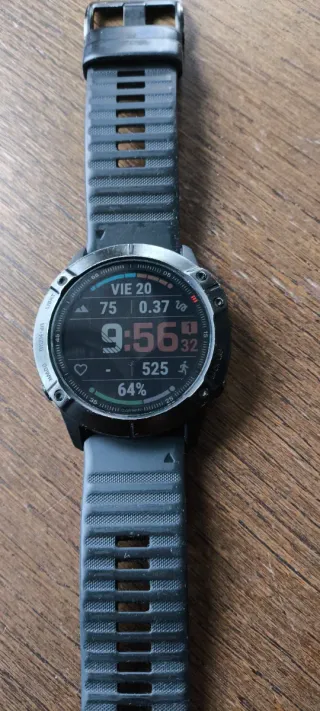Reloj deportivo Garmin Fenix 6 Con correa negra original, cable de carga y caja Funciona perfectamente y la batería dura Tiene alguna marca de uso, sobre todo la de la parte superior de la pantalla Tiene modalidades para muchos deportes como correr, ciclismo, natación, senderismo... Running bici bicicleta montaña indoor outdoor velo cyclisme montre montagne rando randonnee smart watch sport bike cycling suunto