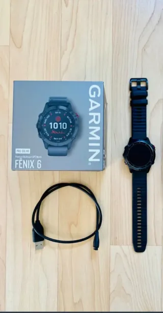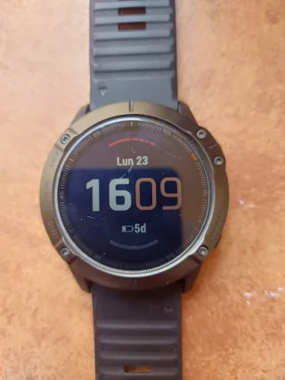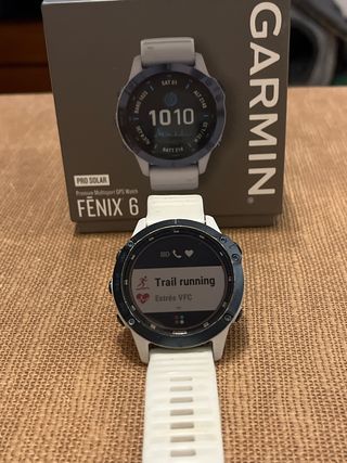 Reloj deportivo Garmin Fenix 6 Pro Solar con GPS. Garmin Fenix 6 Pro Solar en muy buen estado. Lo tengo cuidado, sin golpes a diferencia del resto de anuncios, funciona perfectamente, incluido el modo solar que da buen rendimiento. Características destacadas: Pantalla visible al sol, bisel robusto, resistente al agua (10 ATM). Testado militarmente. Carga de mapas y navegación, obtención de coordenadas. Incluye protector de cristal templado (no esta puesto): sin rayaduras visibles en la pantalla. Cable cargador original !!! Perfecto para deporte, montaña, uso diario. Estado: Muy bien conservado.La batería solar rinde bastante