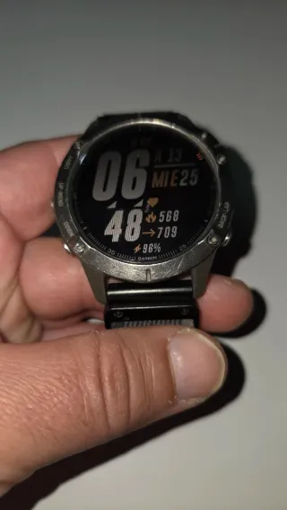 En muy buen estado, nunca me ha dado un problema, la batería sigue durando varias semanas, tiene alguna marca de uso, pero el cristal está perfecto y es todo bastante superficial. Entrego con el cable de carga, la caja no la encuentro. Lo vendo por que voy a cambiarlo a uno superior. #suunto #fenix 8 #fenix 7 #applewatch #smartwatch #amazfit