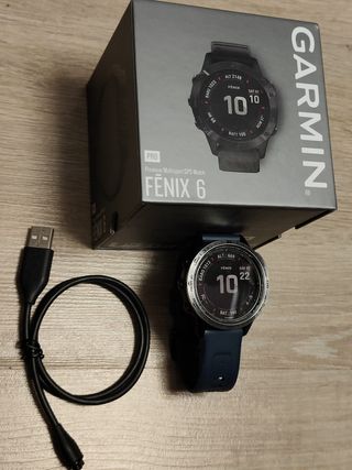 Vendo Garmin Fenix 6X Pro Zafiro (51 mm) en muy buen estado, totalmente funcional. 🔹 Cristal zafiro (sin rayaduras) 🔹 Tamaño 51 mm (6X) – ideal para deporte y montaña 🔹 Incluye caja original, cable de carga original, y correa adicional azul 🔹 Batería en buen estado, mantiene muy buena autonomía 🔹 GPS, mapas, música, multideporte, pulsómetro, SpO2, etc. Reloj muy cuidado, perfecto para trail, running, ciclismo, senderismo, gimnasio, seguimiento de actividad diaria y sueño, etc 📍 Entrega en mano en Madrid (zona las Tablas)