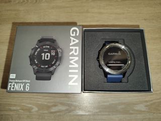 Reloj inteligente Garmin Fenix 6 Pro con correa azul. - Esfera redonda. - Correa de silicona azul ( 2 meses) - Bisel metálico. - cargador incluido