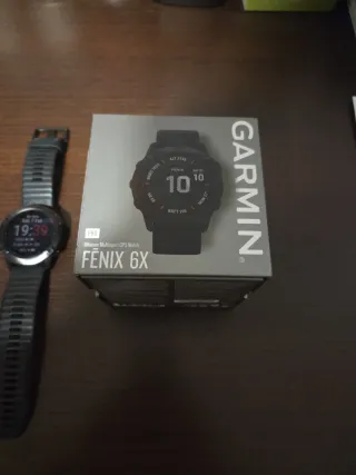 Vendo Garmin Fénix 6X Pro (51 mm) por cambio a modelo superior. Reloj multideporte premium, ideal para running/trail, montaña y entreno diario. Incluye: • Reloj Garmin Fénix 6X Pro • Cable de carga y caja • Correa original Funciones destacadas: • GPS + mapas (navegación/trackback) • Música • Métricas avanzadas de entrenamiento (carga, VO2max, etc.) • Pulsómetro en muñeca, altímetro/barómetro, notificaciones • Batería muy sólida ñ Estado: Pantalla: con protector sin arañazos Bisel/caja: perfecto estado