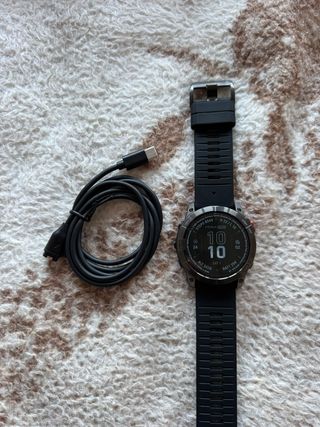 Vendo reloj inteligente Garmin Fénix 6 en perfecto estado, junto con 7 correas adicionales. El reloj se ve impecable, salvo pequeña mancha en pantalla que se puede ver en fotos y no impide nada la visualización en actividad o estéticamente. (Trasparencia entre todos) - Incluye 7 correas de diferentes colores. -Caja original -Correa negra y blanca originales, las otras no, pero os aseguro que son de una calidad total, tanto la sensación de llevarlas, como al ojo. - El reloj está en excelentes condiciones. -Reloj con fecha 1-5-25 en las fotos. -Podemos intercambiar Strava y ver como sube mis ejercicios.