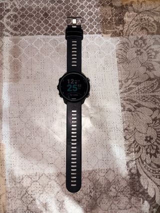 Reloj inteligente Garmin Forerunner 255 Music en color negro. Diseñado para deportistas y entusiastas del fitness. Poco uso como se puede comprobar en las fotos. Se incluye protector de reloj y tiene cristal templado puesto. - Pantalla a color. - Diseño deportivo y ligero. - Correa de silicona cómoda. Esta en garantía hasta Junio de 2027. Preferiría entrega en mano para que se vea el estado impecable en el que esta el reloj.