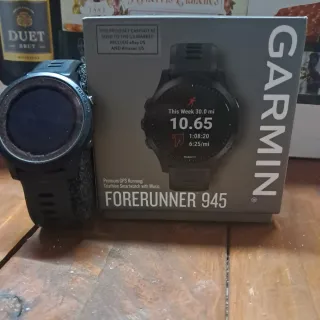 Reloj inteligente Garmin Forerunner 945 Premium GPS Running /Triatlon Smartwatch with Music En excelente estado, impecable, prácticamente nuevo con muy poco uso Funciona perfectamente. Correa de silicona original nueva sin usar - Incluye caja original - Manual de instrucciones - Cable de carga USB