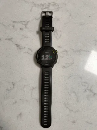 Reloj deportivo Garmin Forerunner 245 en color gris. Ideal para corredores y deportistas. - Correa de silicona. - Hebilla de metal. Siempre usado con cristal protector. quitado para las fotos. se regala dos unidades adicionales. Entrega en mano en Las Tablas o Barrio Salamanca.