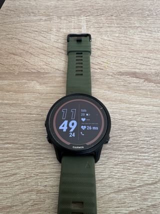 Reloj deportivo Garmin Forerunner 945 con correa de color verde lima. Rozadura en la parte superior del bisel. El resto en buen estado. Ver fotos Con la caja original