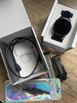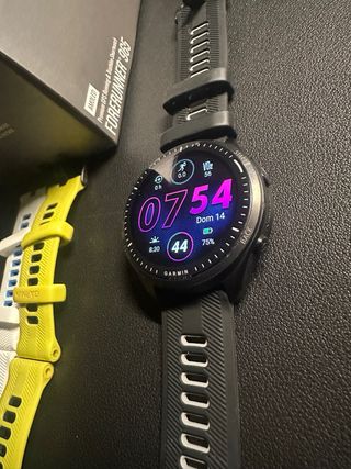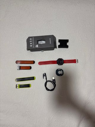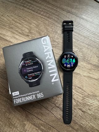 Reloj inteligente Garmin Forerunner 965 con pantalla AMOLED. Se vende por cambio a otro reloj. Incluye 4 correas adicionales de buena calidad. Diseño ligero y cómodo para correr, gimnasio y día a día. En perfecto estado, siempre muy cuidado, con caja y cargador