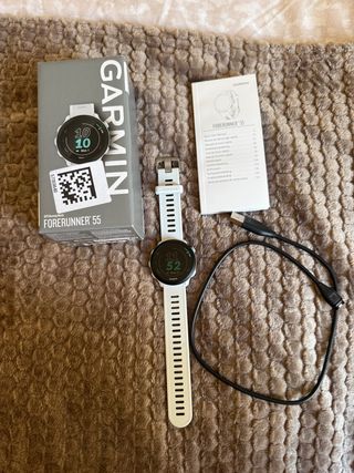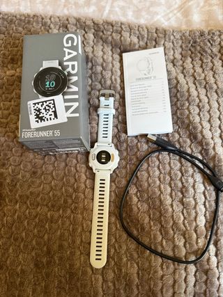 Reloj deportivo Garmin Forerunner 55 en color blanco. Ideal para corredores y deportistas. - Pantalla a color. - GPS integrado. - Monitorización de actividad física. - Autonomía de batería prolongada. incluye cargador!