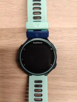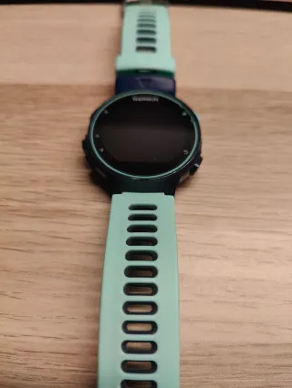 Reloj GPS Garmin Forerunner 935 con correa. Tiene uso pero funciona perfectamente. Cambio porque me han regalado el otro. Regalo correas: negra, azul, amarillo, naranja y verde claro - Color de la correa: verde azulado. - Pantalla circular.