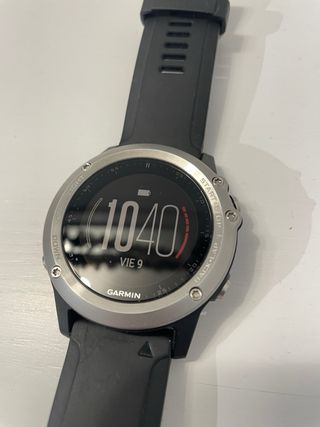 Reloj deportivo Garmin Fenix 5 Plus con lente de zafiro. Incluye la caja original y el cargador. Lo ha usado mi padre para salir a andar puntualmente . Esta como nuevo. Trato en mano.