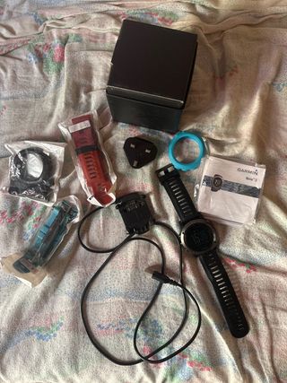 Reloj deportivo Garmin Fenix 3 con accesorios. - Incluye 2 cargador USB. - Correa de velcro negra. - Correa de metal negra. - Correa de repuesto negra.