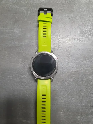 Reloj inteligente Garmin Fenix 6X Pro con correa de color verde lima. - Pantalla circular. - Correa de silicona. - Bisel negro. Se vende porque he comprado otro reloj, funciona perfectamente.
