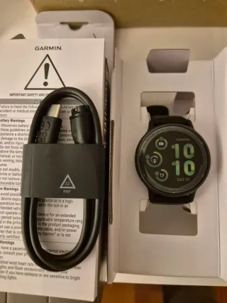Vendo reloj deportivo Garmin Forerunner 55. Está en muy buen estado y se incluye la caja y el cable cargador. Lo único que tiene, es una rascada/picada que saltó un trocito de cristal. Le di sin querer con el pomo de una puerta. Mucha rabia, pero apenas se aprecia y no afecta en nada. En la foto principal se puede ver, aunque hay que fijarse porque es poco. Igualmente, por eso le bajo el precio. Sino estaría más caro porque funciona a la perfección y la batería me dura días. Me han regalado otro reloj y no he podido gozar de este mucho tiempo 🙏🏼⭐️ Espero que alguien le de una segunda vida 🚀