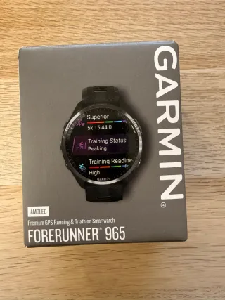 Reloj inteligente Garmin Forerunner 965 en color negro y con detalles plateados. Diseñado para corredores y triatletas. - Pantalla AMOLED siempre protegida con un cristal protector. Creo que tengo alguno más que podría enviar también. - Ni un rasguño - GPS de alta precisión. - Funciones avanzadas de entrenamiento. - Guardo la caja original. Vendo por lesión y no poder correr nunca más 🤦🏻♂️ Lo compré en Junio de 2024 así que todavía tiene garantía. Tengo también banda de pulso Hrm pro plus a la venta (a parte).