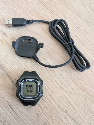 Reloj deportivo Garmin en color negro, ideal para actividades al aire libre. Apenas usado. Incluye su cargador. - Diseño deportivo y funcional. - Carga mediante conexión USB. - Falta la correa.
