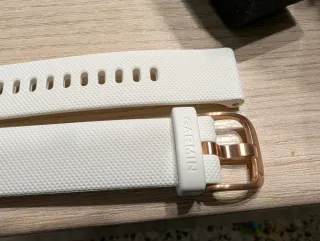 Reloj inteligente Garmin con correa blanca y detalles plateados. - Diseño elegante y moderno. - Correa cómoda para uso diario. Bateria bien