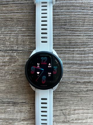 Reloj deportivo Garmin Forerunner 165 en color blanco. - Diseño moderno y ligero. - Correa de silicona cómoda. - Pantalla a color.