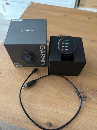Smartwatch Garmin Venu con pantalla AMOLED y GPS integrado. Un reloj elegante y funcional. - Pantalla de alta resolución. - GPS para seguimiento de actividades. - Diseño moderno y cómodo. Duración batería aprox: 24-48horas.