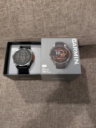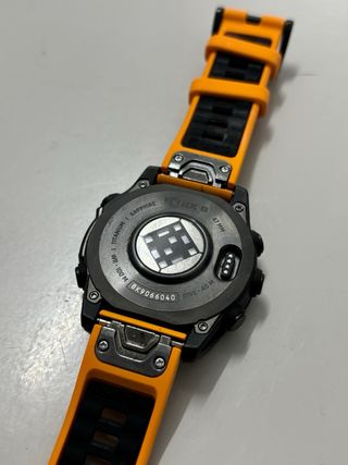 Reloj inteligente Garmin Fenix 8 con correa naranja. - Esfera redonda. - Correa de silicona naranja. - Bisel negro. se compró en octubre de este año, se entrega con caja, cable cargador y correa original. se entrega también factura, se vende por cambiar al de 51mm, desde día 1 se tiene con protector de cristal.