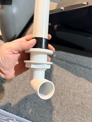 Desagüe para vivero de barco, fabricado en PVC blanco. - Tubo de PVC blanco. - Base con rosca para montaje. - Conexión en T. bassBoat tracker nitro triton ranger bass boat barco barca pesca navallana orellana garcia sola cijara motorguide haswing Minnkota lowrance Garmin