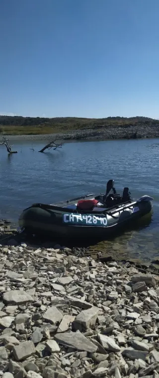 Barca hinchable de tipo Zodiac, ideal para carpfishing, con suelo de madera y ya matrículada para navegar directamente. Todos los papeles de barca y motor, número de serie en la barca y bastidor en el motor. Se incluye: -Motor eléctrico -Bateria -Sonda Garmin con GPS ya instalada -Inflador -Kit de reparación