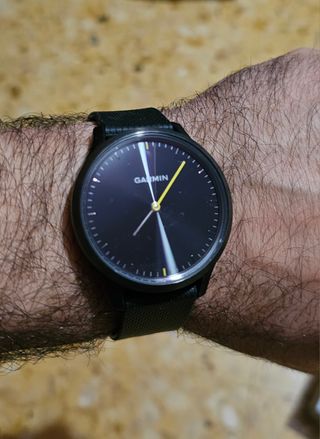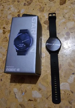 marca: GARMIN modelo: VIVOMOVE HR talla: L color:NEGRO incluye un protector de goma negra para la esfera. fecha de compra 30/12/2023 incluye garantía en vigor de 2 años.